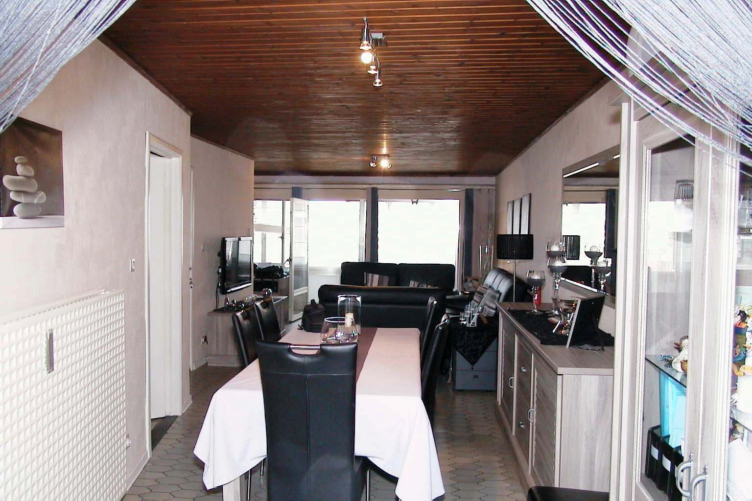 Ruime woonkamer met afgesloten terras, ingerichte keuken, nachthall, apart toilet, badkamer en drie slaapkamers.