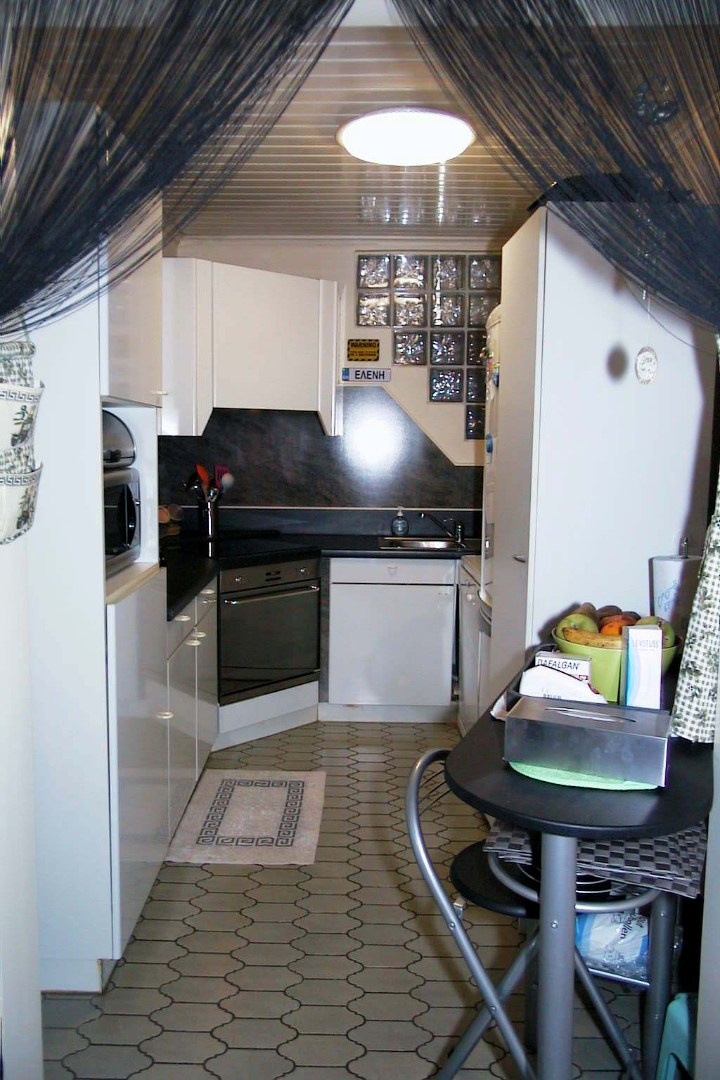 - de keuken omvat een ruim keukenmeubel voorzien van frigo, kookplaat, dampkap en oven ;