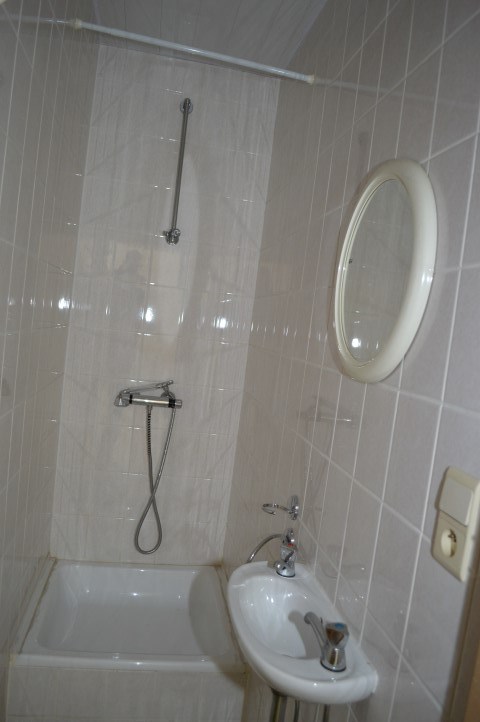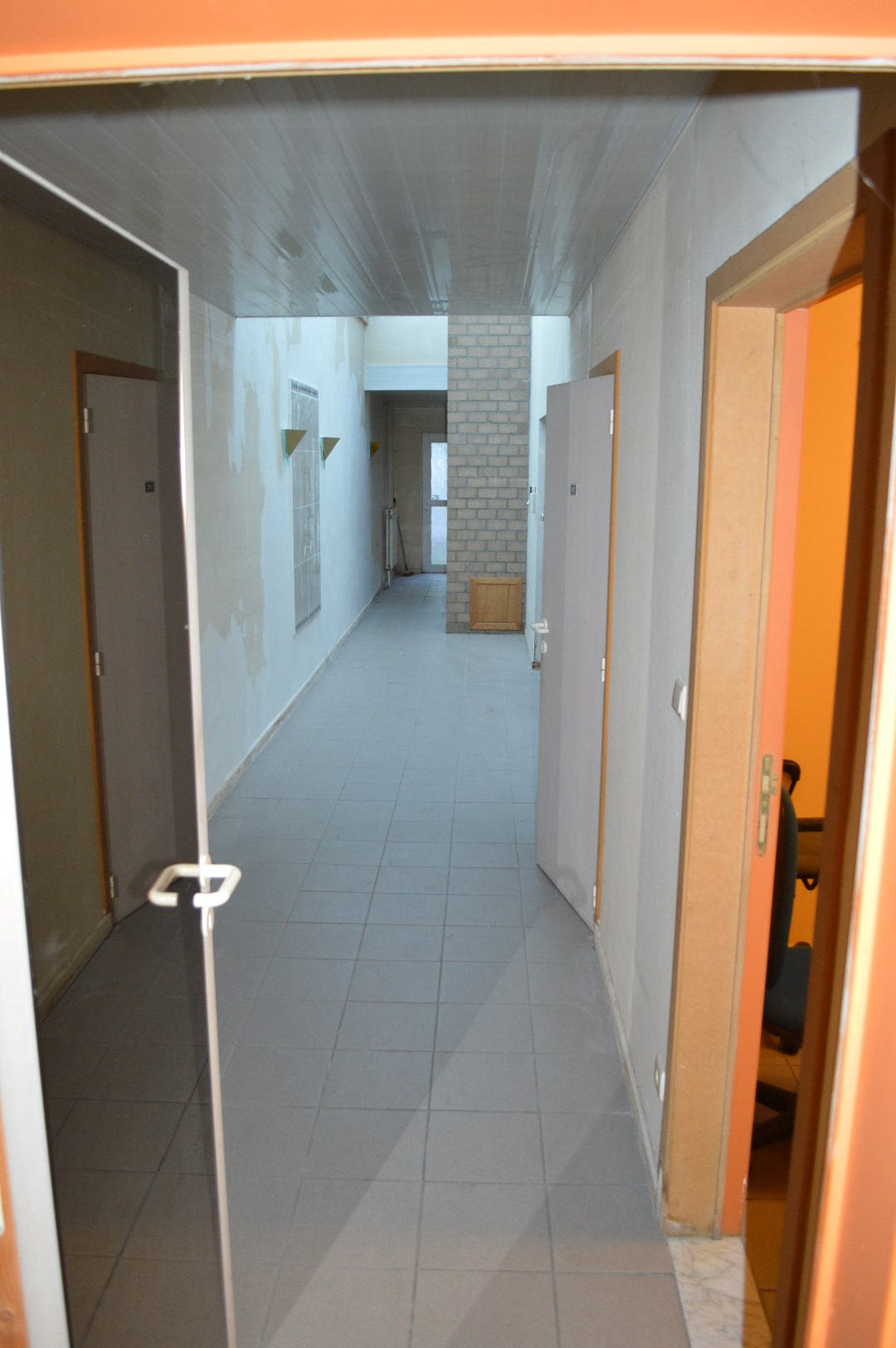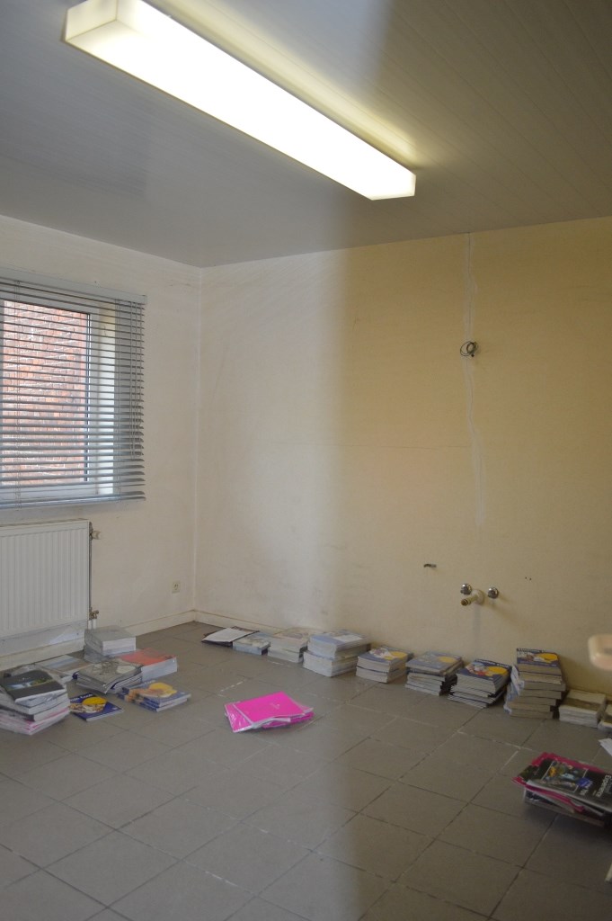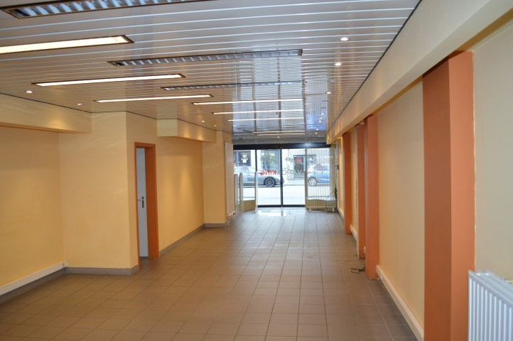 Indeling : handelsruimte van 63 m² (vitrine van 3m81 straatbreedte met zijraam van 2 m) en achtergelegen gelijkvloers : hall, twee ingesloten bureelruimtes (6 m² elk), twee doucheruimtes, apart toilet, keuken (11 m²), bureelruimte met buitenraam (16 m²) en achteraan op de verdieping nog twee bureelruimtes met buitenraam(15 m² elk).